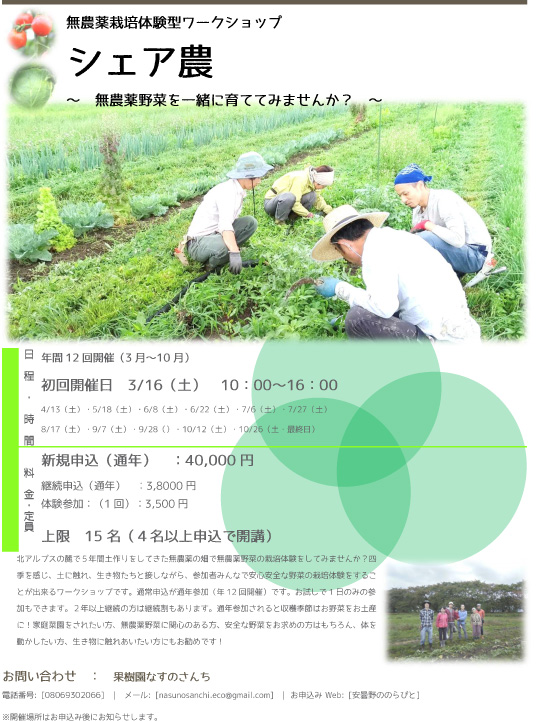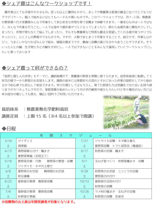 昨年開催したワークショップ「シェア農」好評につき、今年も開催を決定いたしました!
