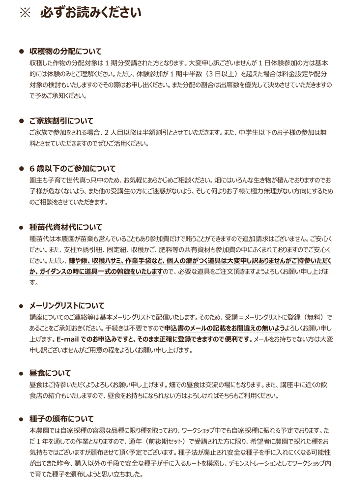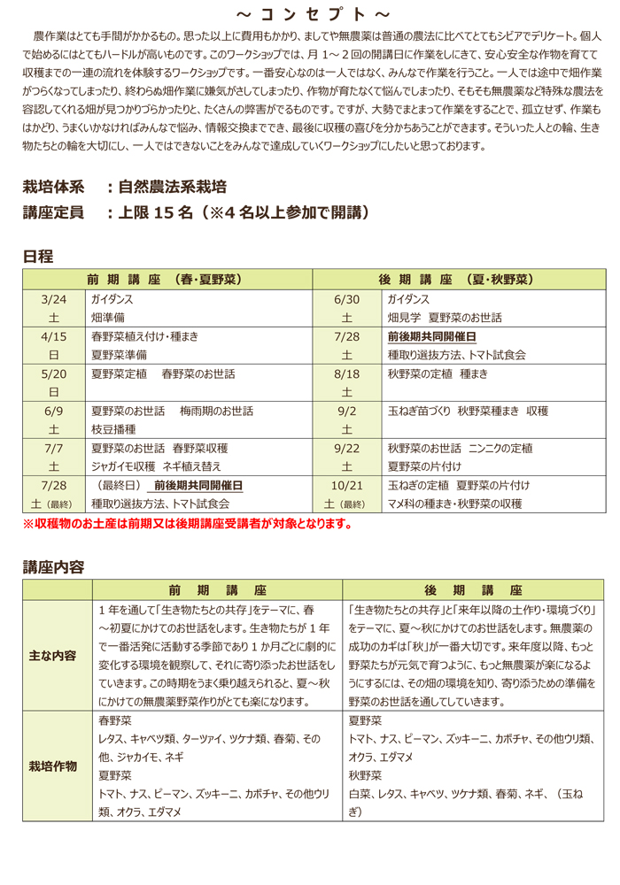 さて、今年の第1回目のインフォメーションは実は「野菜苗予約」ではなく「ワークショップ」のご案内です。